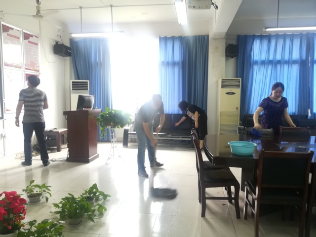 学院五个党支部的师生党员在3号教学楼一楼集中后,由各党支部书记领队,分成五个小组展开清洁工作。学院党总支书记彭敏、党总支副书记吴少明、副院长胡波带头参与到此次清洁活动中来,师生共同维护校园清洁。