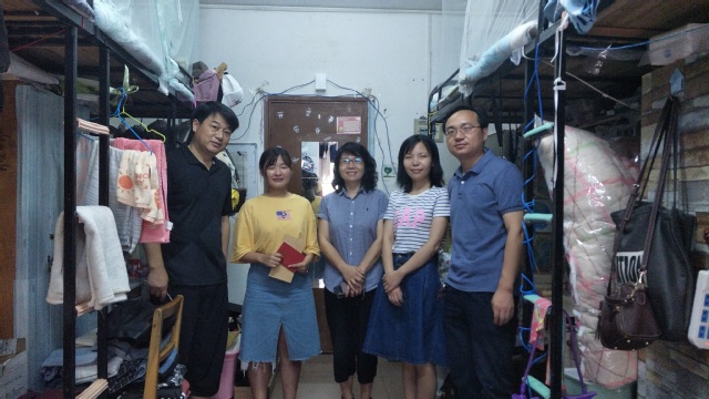 在建党98周年之际,外国语学院党总支书记彭敏、党总支副书记吴少明、学工办主任桂利军及年级辅导员张黎老师先后到西区2栋两间宿舍慰问了困难学生党员张会和易继华,为他们送去了党组织的温暖和关怀。
