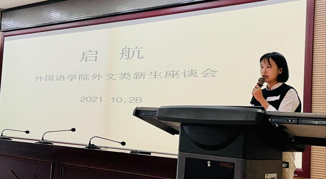 (通讯员:王尚彧)为了让2021级外国语言文学类新生更好更快地融入大学生活,规划大学学习目标,我院于10月28日中午在新图书馆一号报告厅举行了新生座谈会,外国语学院院长刘晖、副院长胡波,系负责人、任课老师代表以及2021级外文类全体新生参加本次座谈会。本次会议由英语系主任陈曦主持。