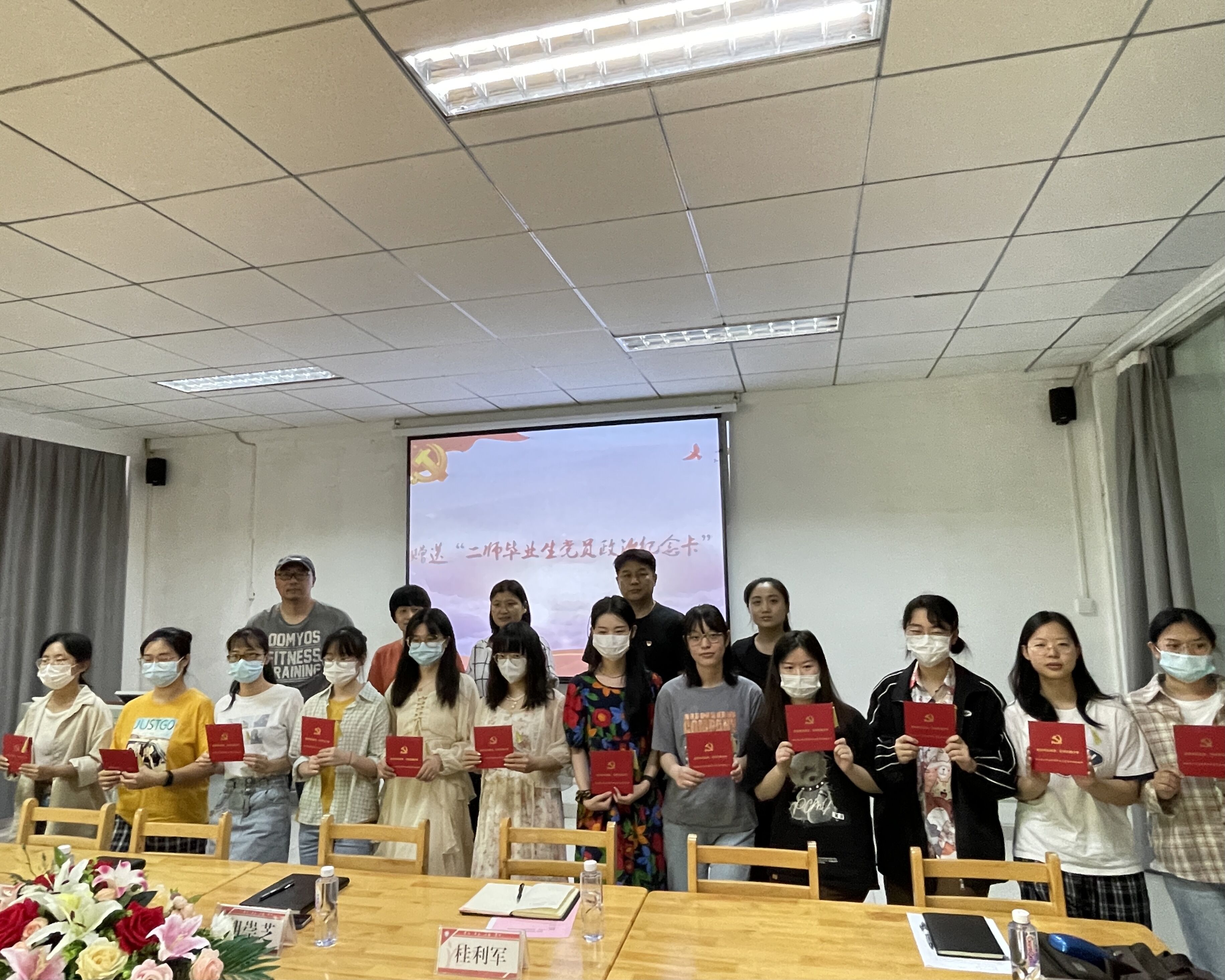 座谈会后,胡书记向毕业生党员们颁发了“二师毕业生党员政治纪念卡”并合影留念。组织员陈思以“习近平总书记对青年的殷切期望”为主题为毕业生党员上党课。