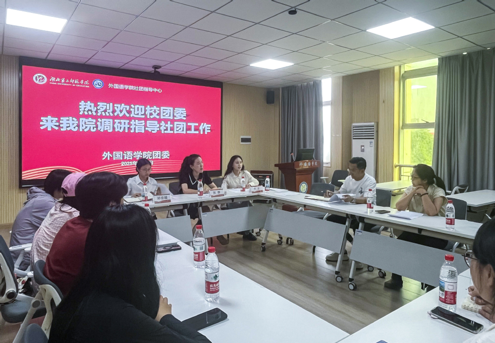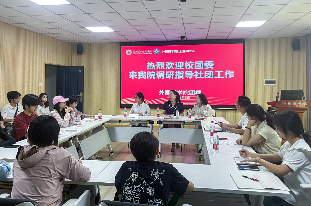 (通讯员 周群英)6月6日下午,校团委副书记张静、兼职副书记李芊、校社团联主席郑佳媛来我院调研指导社团工作,各社团负责人、社团指导教师代表、外国语学院学工办主任、团委负责人及团学骨干齐聚一堂,共同为校园社团高质量发展献计献策。