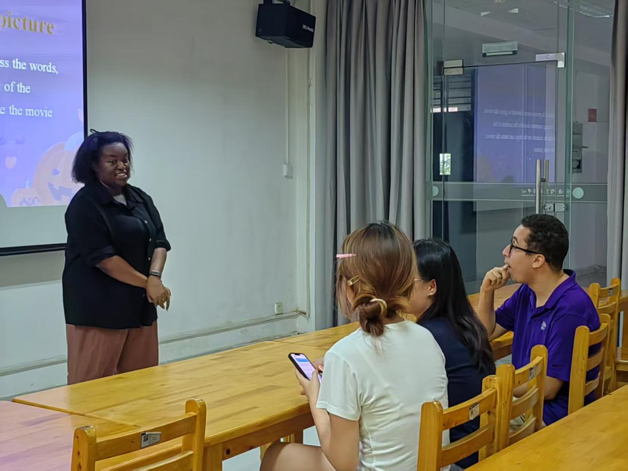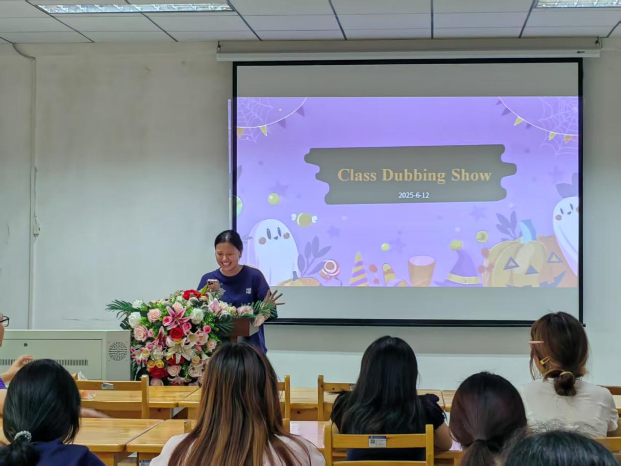 外院网讯(通讯员 全荣蓉)6月12日晚18:30,外国语学院二楼多功能教室热闹非凡,一场以“Class Dubbing Show”为主题的英语角“配音秀”活动精彩上演。本次活动由22级翻译1班精心策划组织,吸引了外国语学院外籍教师Wesley、Thando以及全校众多英语爱好者踊跃参与,在校园里刮起一阵跨文化交流的“趣味风”。