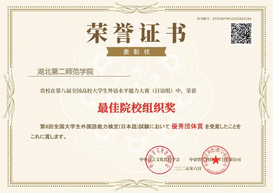 值得一提的是,我校凭借出色的赛事组织工作荣获“最佳院校组织奖”。这一殊荣,不仅是对我校日语教学的高度肯定,更深刻体现了我校“教学相长,知行合一”的教育理念。外国语学院负责人表示,将以此次比赛为契机,进一步优化教学模式,提升教学质量,为培养更多优秀的复合型人才贡献力量,正如“新竹高于旧竹枝,全凭老干为扶持”。