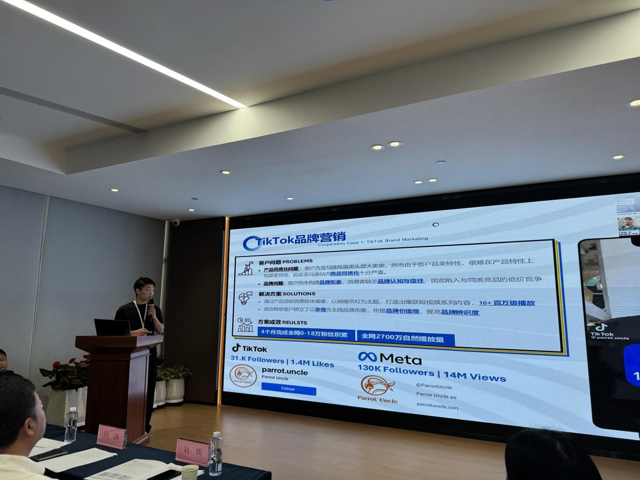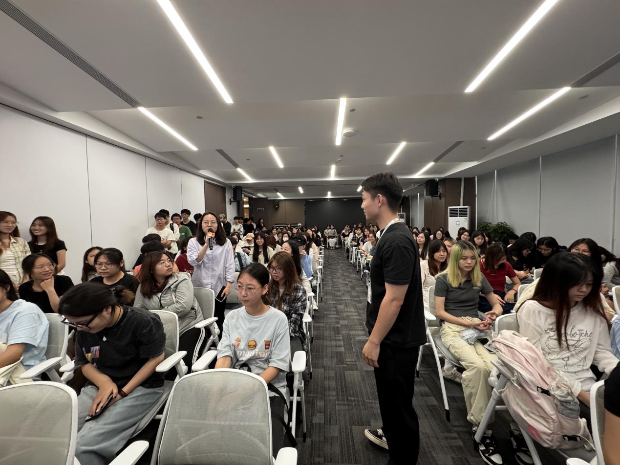紧接着,学院分党委书记胡崇芝代表学院与猫宁公司签订校企合作共建实习实训基地协议并授牌,为学生未来的实践实习提供了坚实保障。协议签订后,猫宁公司电商部总监王文博为师生们开展企业介绍及跨境知识分享,他从行业前沿动态到实操经验进行了详细讲解,并与学生展开积极互动,为师生们带来了跨境电商领域的专业洞察,让学生们对专业知识在实际中的应用有了更清晰的认识。