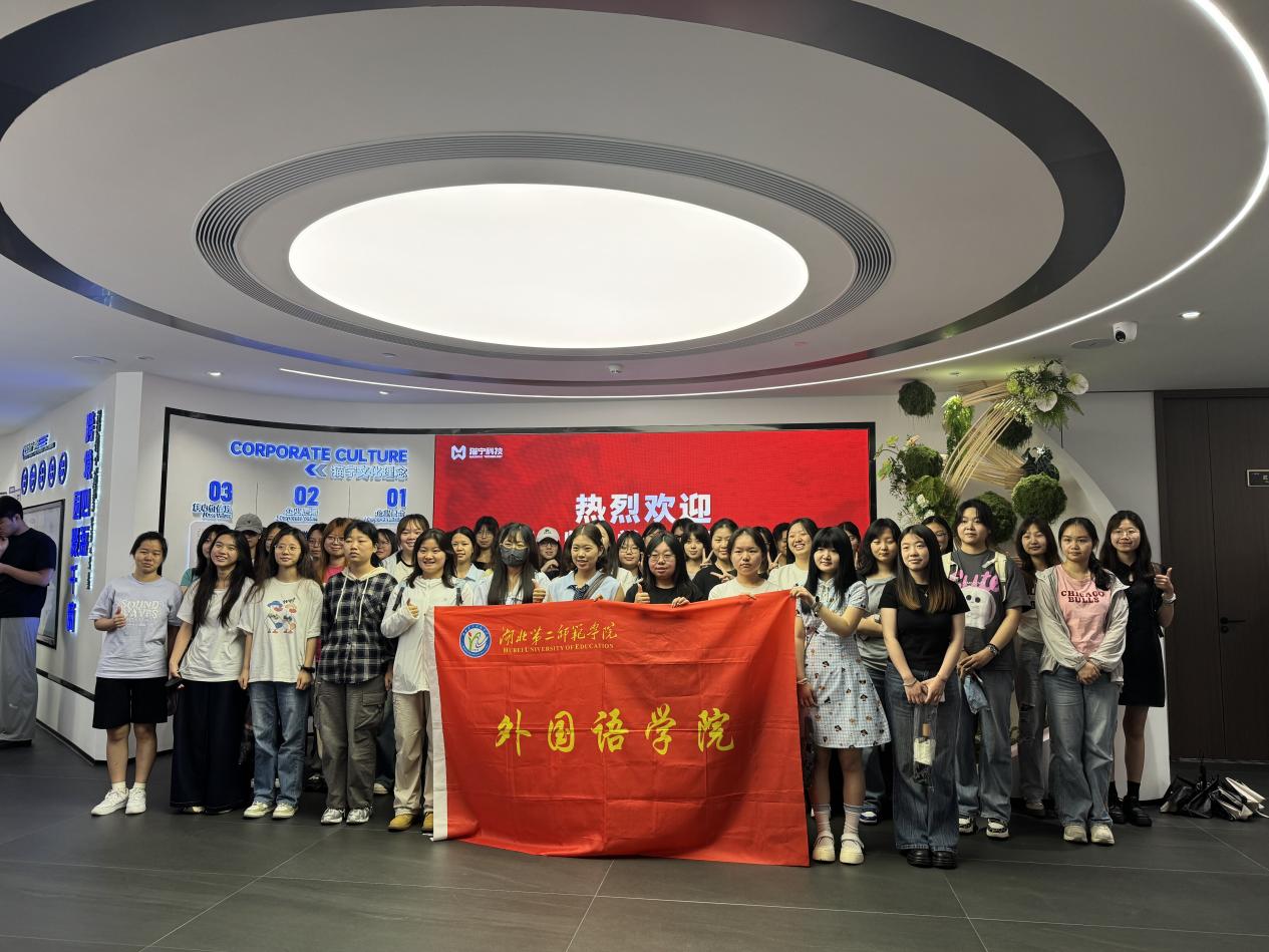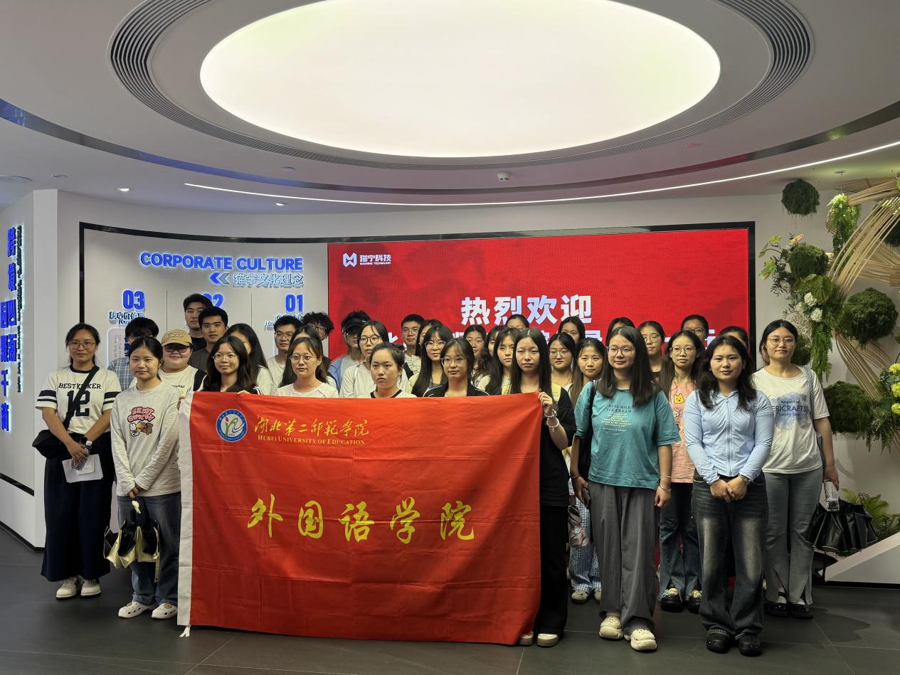 (通讯员:邱辛欣)2025 年 6 月 20 日,湖北第二师范学院外国语学院商务英语专业 22 级、23 级和 24 专升本全体学生共173人,在学院分党委书记胡崇芝、院长刘晖、副院长冶慧颖和商务英语系骨干教师的带领下前往青山滨江跨境电商产业园,赴湖北猫宁科技有限公司开展专业认知实践活动,共探人才培养与跨境电商领域协同发展新路径。