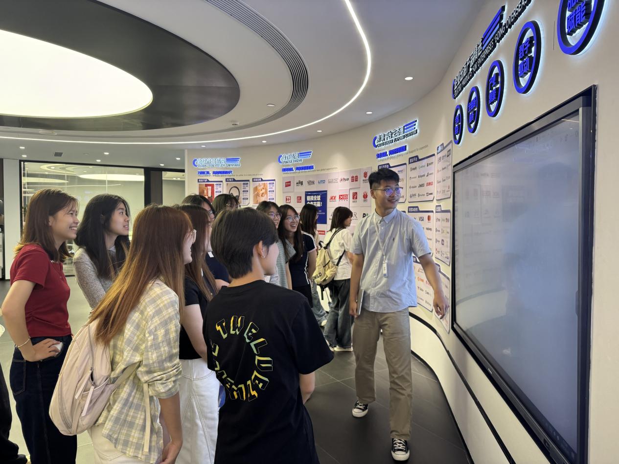 随后,师生们参观了猫宁公司及跨境电商产业园,直观了解企业运营环境与跨境电商产业生态,对行业有了初步的感性认知。师生们全面了解了企业发展历程、业务布局与核心优势,对企业的整体情况有了更深入的认识。部分学生还结合自己的实习和就业意向,与猫宁公司展开深入交流,现场递交个人简历。