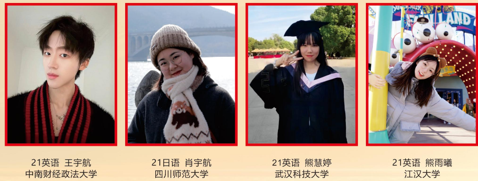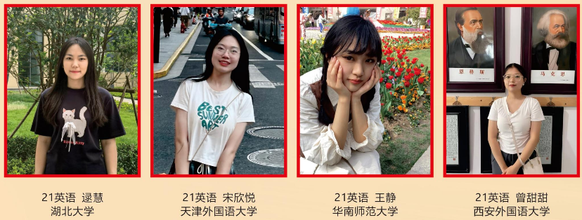 2名同学成功申请了赴港读研,将在香港中文大学、香港教育大学学习。8名同学将分赴英国伦敦大学学院、爱丁堡大学、利兹大学、谢菲尔德大学、美国东北州立大学读研,4名同学将赴日本大和语言教育学院、九州外国语学院继续深造。