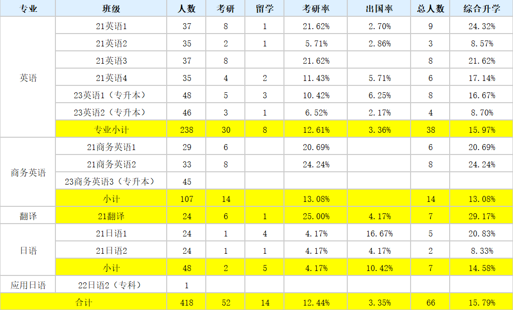 外国语学院2025届418名毕业生中 52名同学考上了国内高校研究生,14名同学赴港、及国外高校深造,整体考研升学率达到15.79%,获得学校教务处“考研卓越进步奖”的嘉奖。