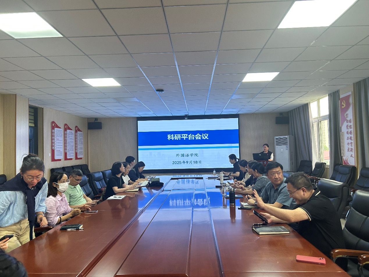 (通讯员 马文娟)2025年9月18日星期四下午,外国语学院在四楼会议室召开了第三季度科研平台工作会,会议由外国语学院科研副院长冶慧颖主持,学院班子成员、科研平台成员、学院兼职硕导老师们参加了此次会议。与会人员围绕学院申硕攻坚工作与科研平台建设发展展开深入交流。