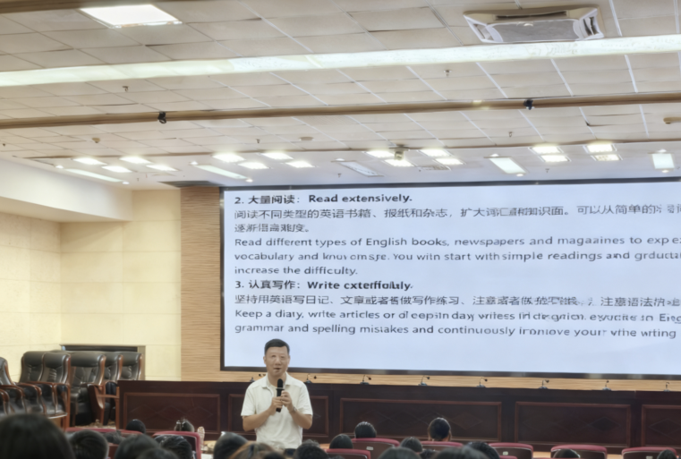 讲座尾声,刘院长强调,英语专业学生要勇于表达、不怕犯错,在实践与纠错中不断提升。他鼓励大家跳出课本局限,通过阅读原版书籍、坚持英语写作、参与英语活动等方式,强化综合语言能力。同时指出,语言学习没有捷径,唯有持之以恒的实践(practice makes perfect),才能夯实基础、学有所成。