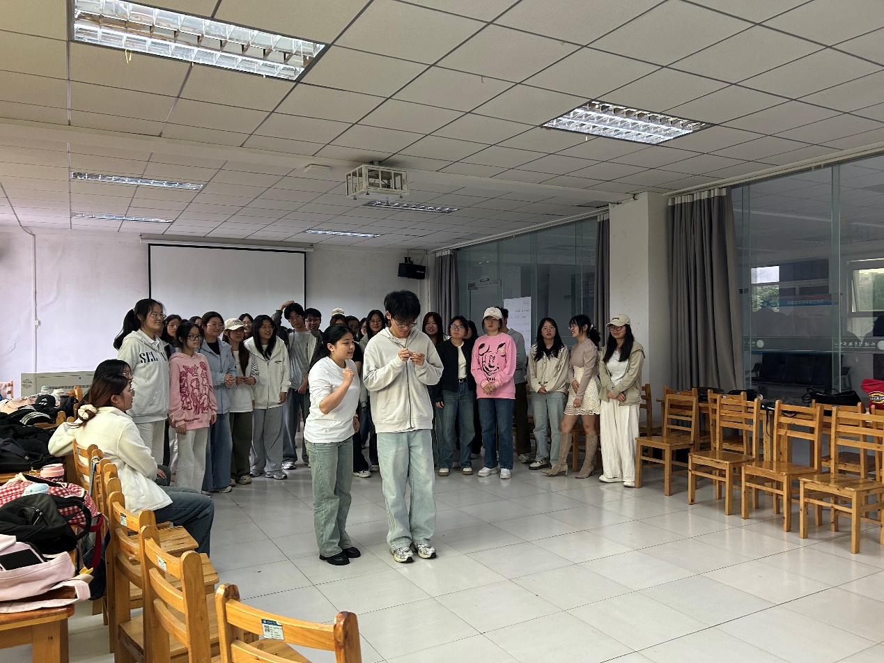 本次活动特别邀请到湖北第二师范学院戏剧教育研究中心戏剧教育导师、资深少儿英语教育培训师及教育戏剧践行者段君老师主讲,23 级英语 1 班的 36 名学生全程参与,在沉浸式体验中感受戏剧与英语学习碰撞出的独特魅力。