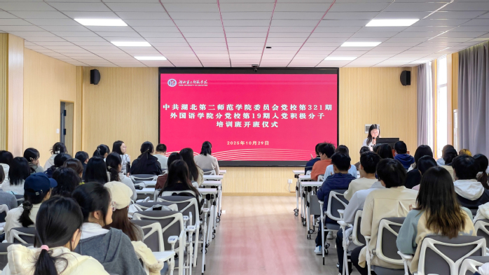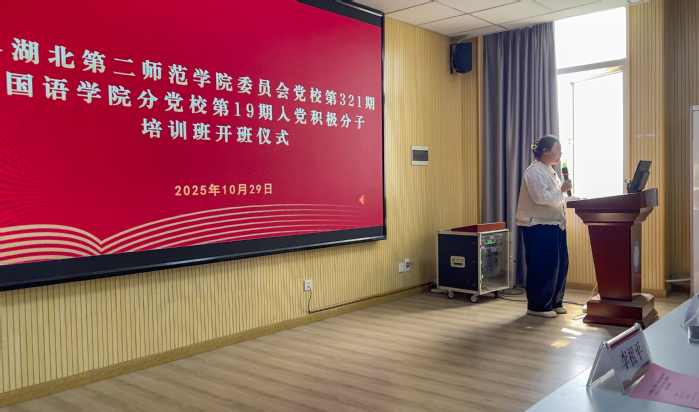 (通讯员 赵雯)2025年10月29日,中共湖北第二师范学院委员会党校第321期暨外国语学院分党校第19期入党积极分子培训班开班仪式在外国语学院三楼会议室隆重举行。外国语学院党委书记胡崇芝、院长刘晖、学生工作办公室主任李祖平、全体辅导员及培训班全体学员参加会议。仪式由2024级日语1班刘慧颖主持。