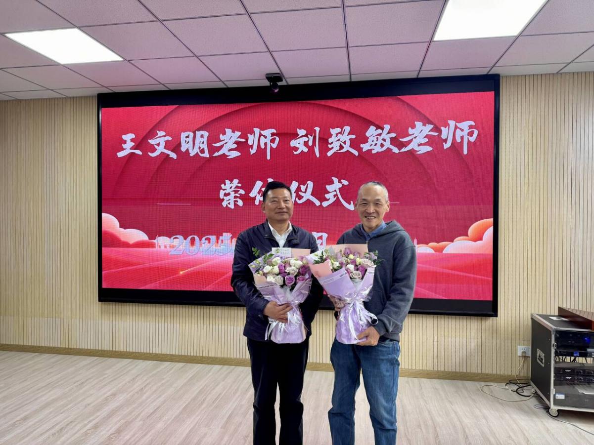 座谈会在热烈的氛围中拉开帷幕。商务英语系主任孙玲燕和翻译系主任杨露首先代表两系致辞,高度评价了刘致敏和王文明老师数十年来在教学、科研及学科建设中的卓越贡献。刘致敏老师深耕商务英语领域,以丰富的实战经验和生动的课堂风格深受学生喜爱;王文明老师则在翻译理论与实践教学中精益求精,为培养高素质语言人才倾注心血。两位老师不仅是青年教师的引路人,更是学生成长路上的灯塔。随后,两个系部的教师们分享了与两位老师共事的难忘经历,特别提到他们在教学中的严谨态度,以及对后辈的关怀与提携。刘致敏和王文明老师在感言中动情回顾了执教生涯的点滴,感谢学院的培养与同事的支持。他们表示,虽荣休离岗,但仍会心系教育事业,关注两系发展。最后,两系教师共同为两位荣休老师送上鲜花,座谈会在掌声与温情的氛围中圆满结束。