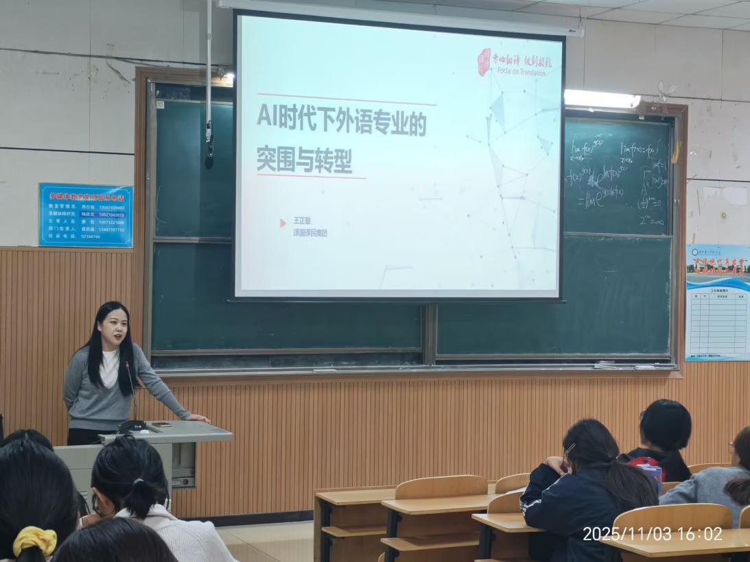 (通讯员:邱辛欣)为帮助商务英语专业大一新生深化专业认知、明晰职业发展方向,11月3日,译国译民教育科技有限公司总经理李凌波、集团考研产品总监、翻译硕士资深规划导师王芷璇受邀走进25级商务英语新生“专业认知与职业生涯规划”课堂,为同学们带来一场兼具行业视野与实践指导的精彩分享。