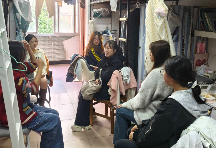(通讯员 熊皓洁)11月3日下午,当2025级商务英语2班的同学们结束半日课程陆续返回宿舍时,发现班导师董存英已早早等在楼下。这是外国语学院“一站式”学生社区的一次日常走访,也是董老师本学期第三次走进这栋宿舍楼。