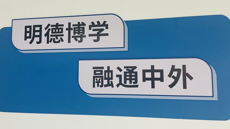 塑造精神标识:在学院官网、宣传栏、楼宇空间等显要位置,系统阐释“教育家精神”的内涵,并提炼出符合外语学院特色的院训“融通中外,启智润心”,将“弘道追求”与“育人智慧”具象化,让每一位师生耳濡目染,内化于心。