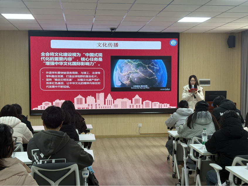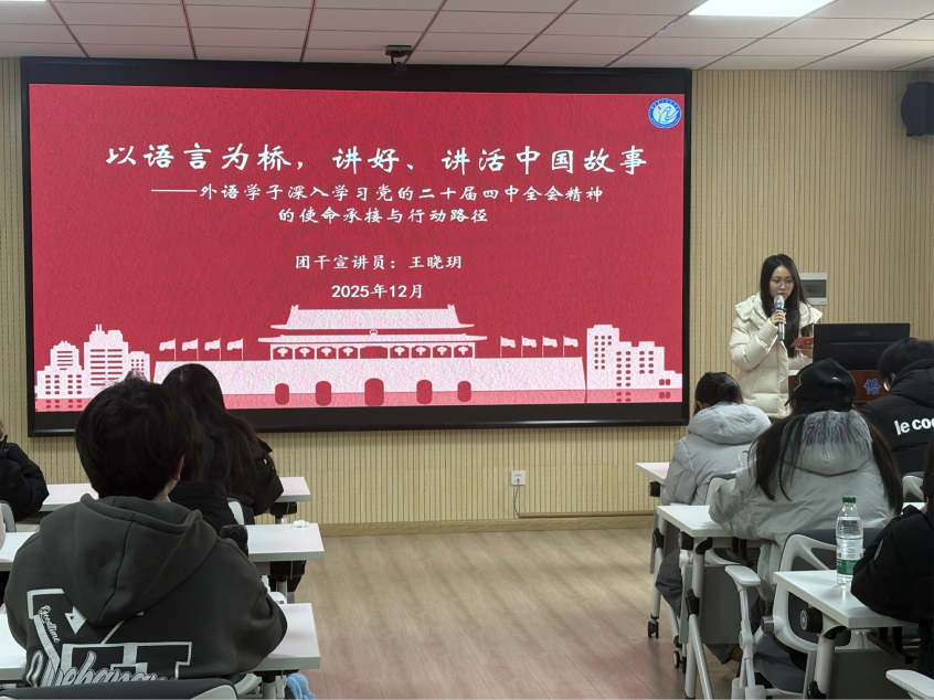 (通讯员:周紫钰彭嘉慧)12月12日,外国语学院面向全体2025级英语专业学生,举办了党的二十届四中全会“悦学习·跃青春”青年宣讲活动。活动以“以语言为桥,讲好、讲活中国故事”为主题,聚焦“十五五”时期国家发展对外语人才的需求,通过政策解读、场景分析与经验对话,引导学生将专业能力转化为服务国家战略的实践动能。