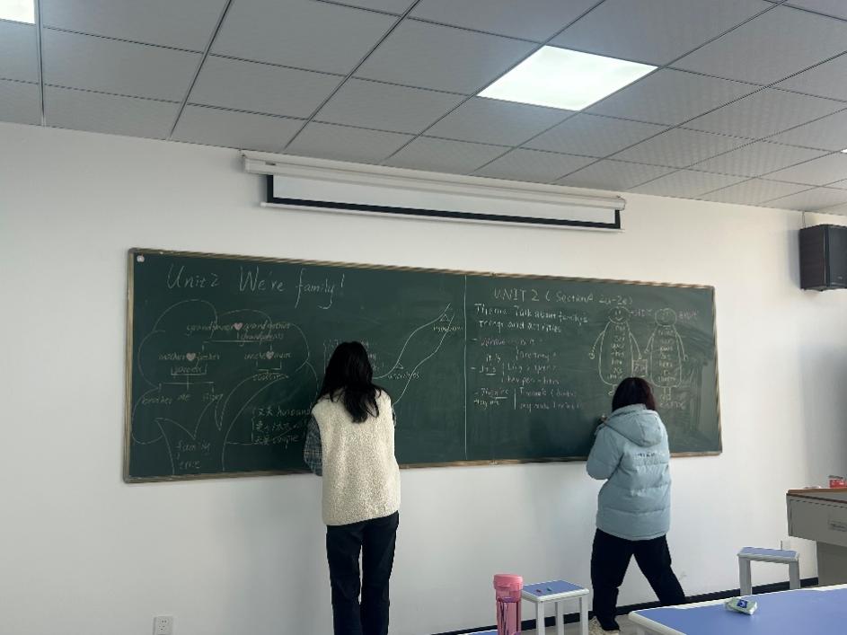实践环节中,学生们以小组为单位,紧扣新课标要求,结合英语学科教学特点,围绕指定教学内容开展板书设计实操。各小组全员参与、热烈研讨,现场氛围十分浓厚,大家各抒己见、碰撞思路,从教学目标拆解、重难点提炼、知识框架搭建,到板书布局规划、内容排版优化、视觉呈现设计,每一个环节都反复推敲、精益求精,让板书既贴合新课标教学逻辑,又兼具实用性、美观性与启发性,真正实现板书为课堂教学赋能、为学生学习增效。
