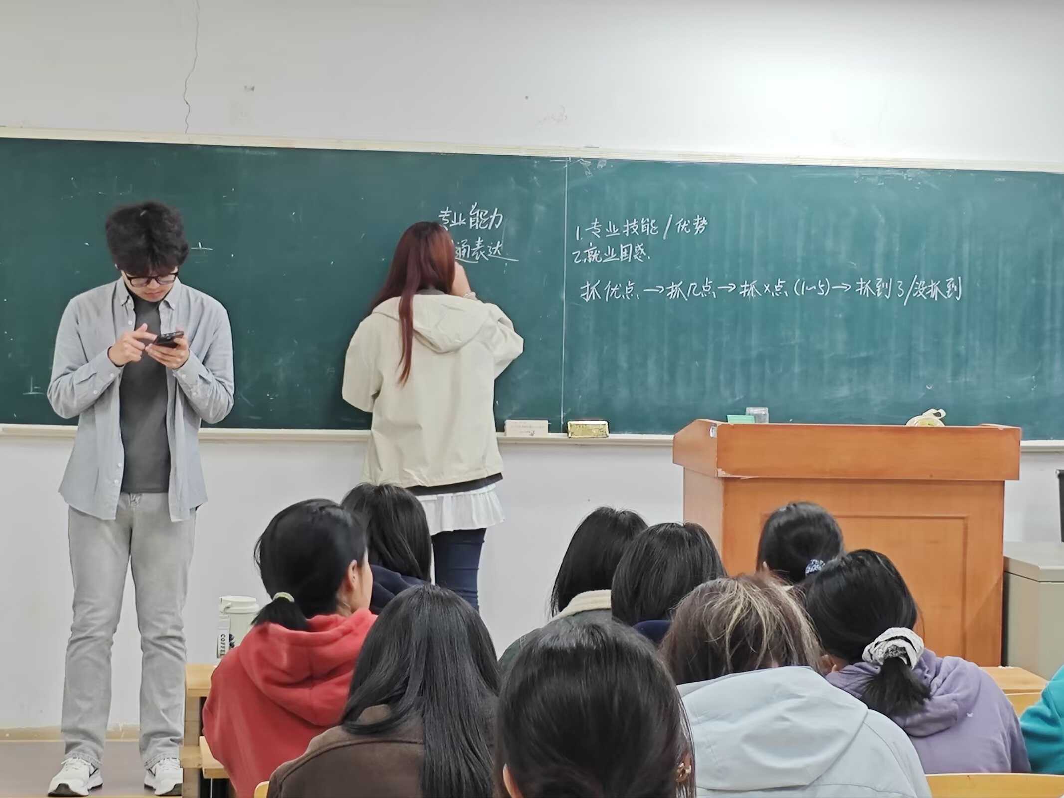 自我洞察瓶环节以小组为单位,让学生匿名写下自身专业技能、性格优势与就业困惑并混入瓶中。大家随机抽取纸团后,结合抽到的内容为对方推荐适配职业并给出解困建议。这一环节打破了独自迷茫的状态,实现了优势互鉴、困惑共解。