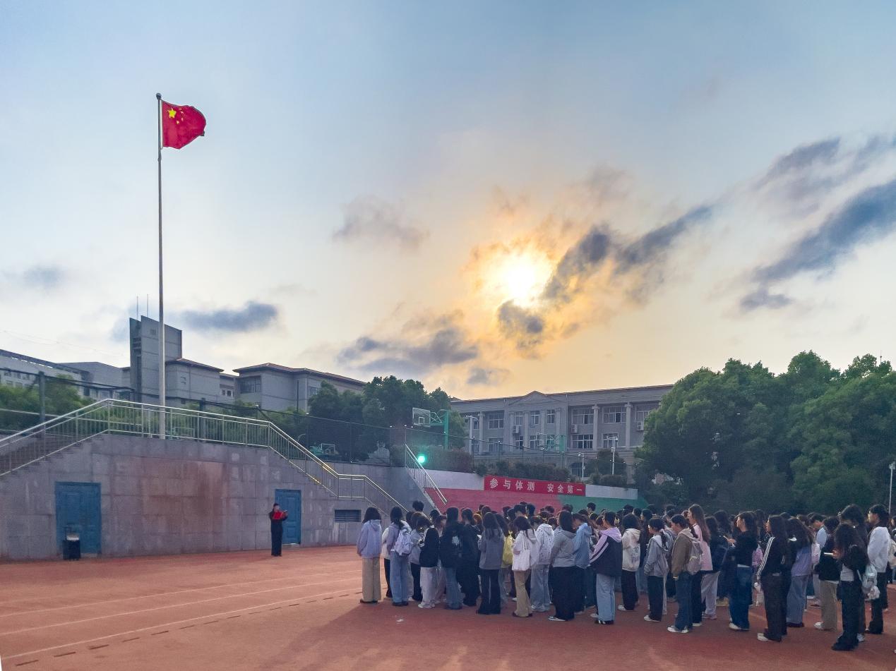晨光熹微,晨风习习。伴随着雄壮嘹亮的《义勇军进行曲》,五星红旗冉冉升起、迎风飘扬。全体师生神情肃穆、列队整齐,面向国旗行注目礼,齐唱国歌,心中激荡着爱国情怀与青春热忱,在庄严仪式中感悟家国情怀,凝聚奋进力量。
